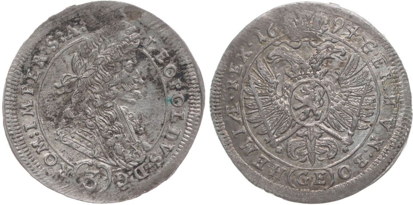 3 Krejcar 1694, Praha-Egerer, Nech.201, MKČ.1425, Her.1461_R!