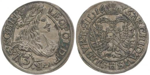 3 Krejcar 1666, Vratislav-Hammerschmidt, Nech.736, MKČ.1619, Her.1535