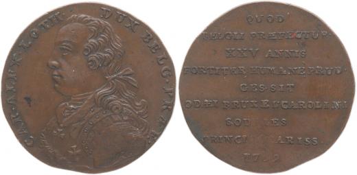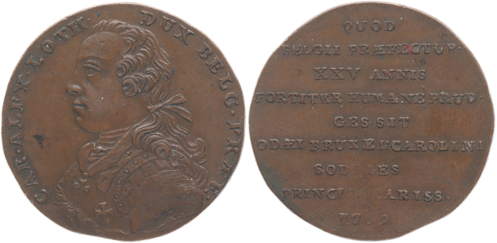 Nesign. - medaile 1769 (místodržící v Rak.Nizozemí) Portrét zleva, opis / 9řádk.latinský nápis Bronz 32 mm, Mo.2124, jako Ho.3100_R!