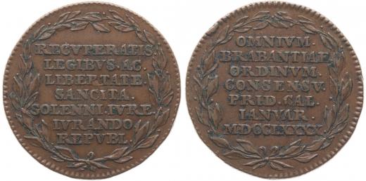 Žeton na nezávislost Brabant 1790#Br 7řádk.nápis ve věnci / 7řádk.nápis ve věnci Bronz 33 mm, 12,57 g, Mo.2195(Ag), LG.XIV/1066