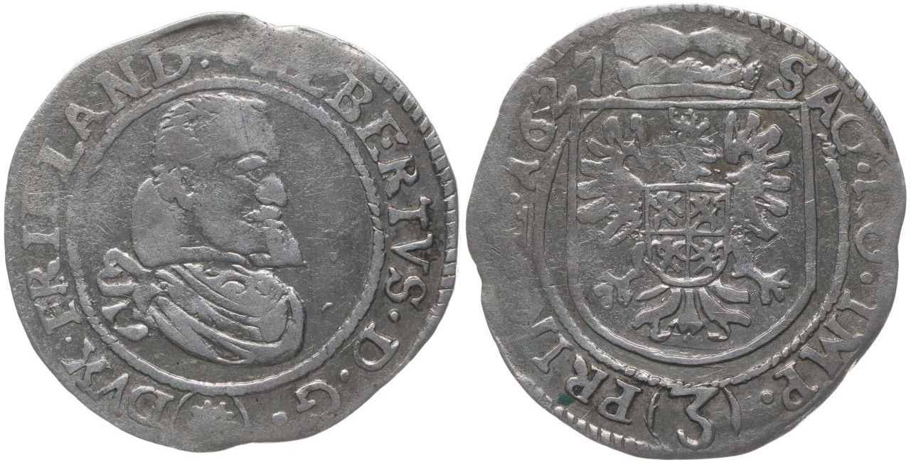 3 Krejcar 1627, Jičín-Reick, Nech.27, Pol.226 opis PRINCE.1627_č.ned. při okraji R!