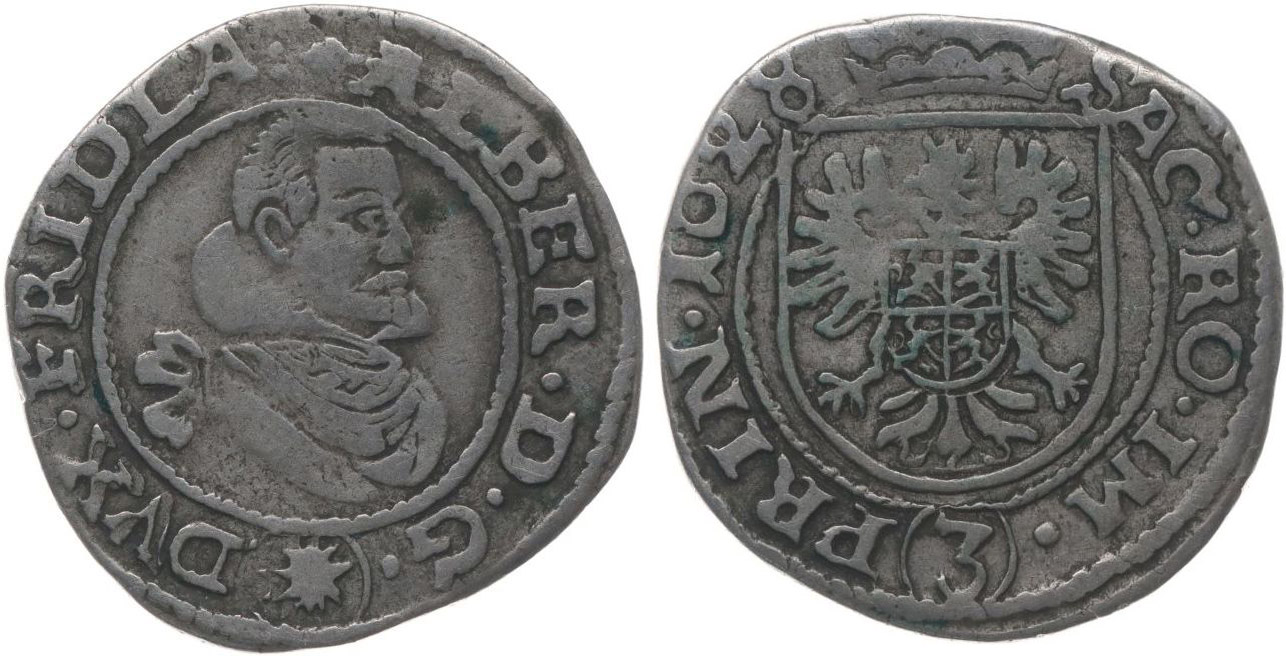 3 Krejcar 1628, Jičín-Reick, Nech.47, Pol.229, Mayer.97