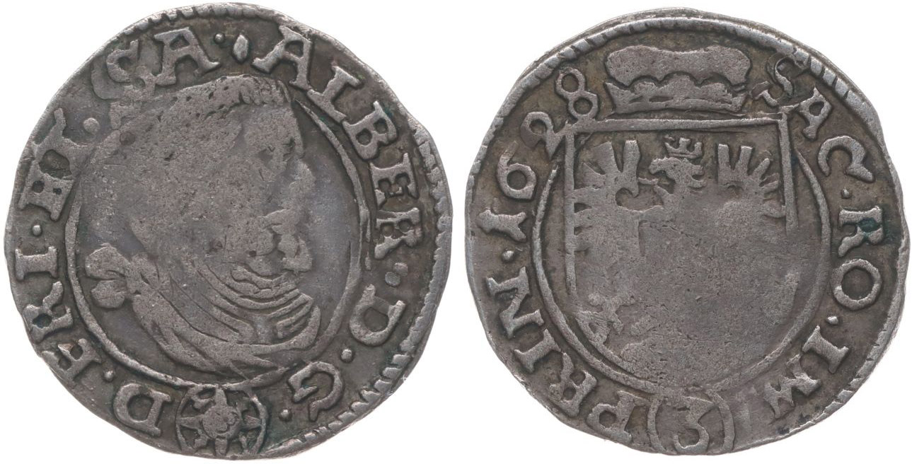 3 Krejcar 1628, Jičín-Reick, pod. Nech.48, Pol.230 opis na av. končí SA._č.ned. v rev. R!