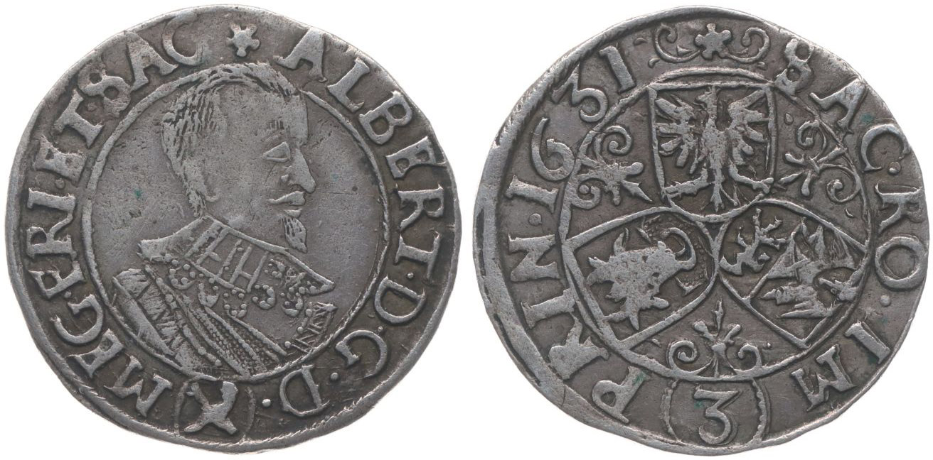 3 Krejcar 1631, Jičín-Steinmüller, Nech.81, Pol.239