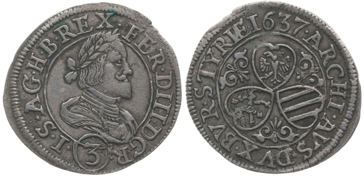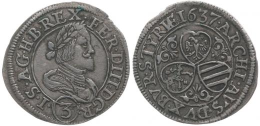 3 Krejcar 1637, Štýrský Hradec, Her.689_dr.okr.raž.