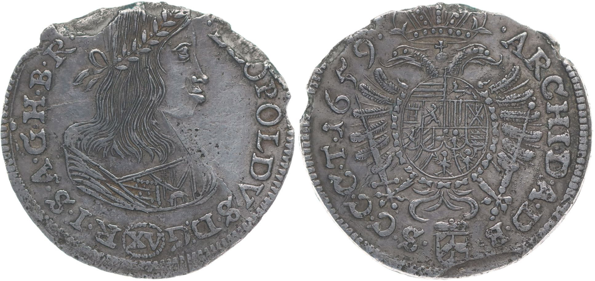 XV Krejcar 1659, Vídeň-Faber, Nech.1889, Höll.59.2.5/3.2, Her.909 _olám.okraj R!
