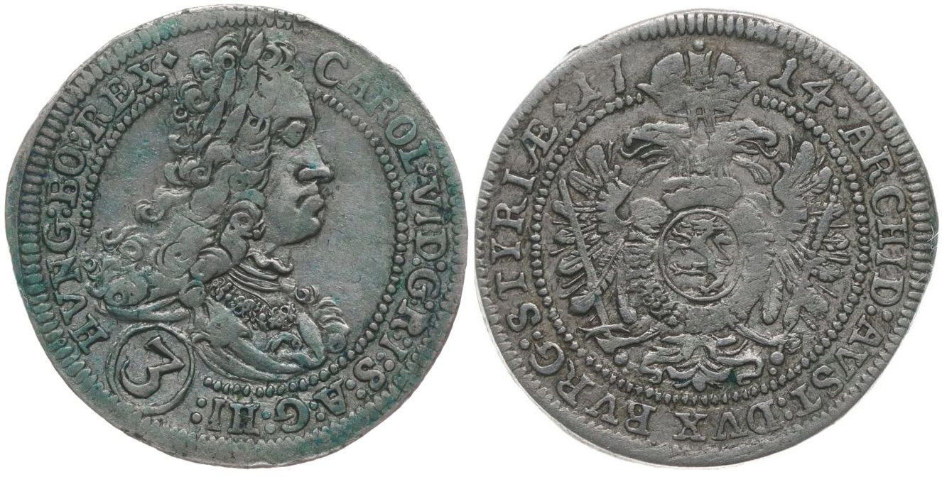 3 Krejcar 1714, Štýrský Hradec, M-A.214, Her.729
