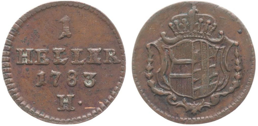 Cu Haléř 1783 H, Günzburg (pro Přední Rakousko) P.55, J.32, He.454, AM.30_R!