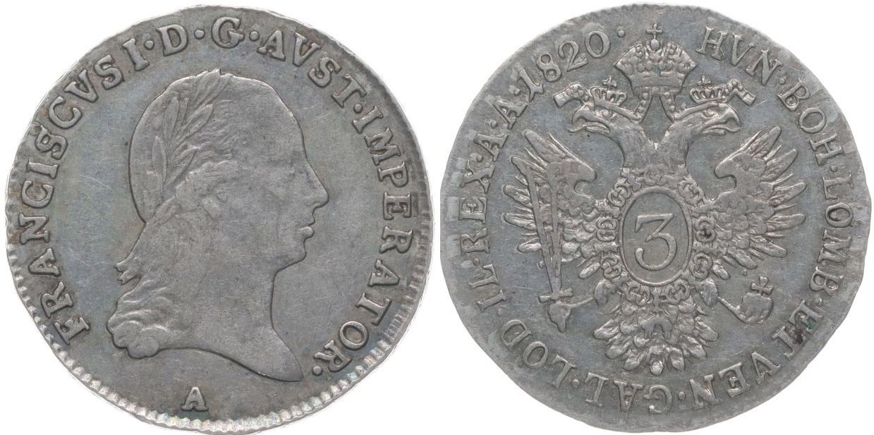 3 Krejcar 1820 A