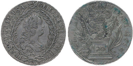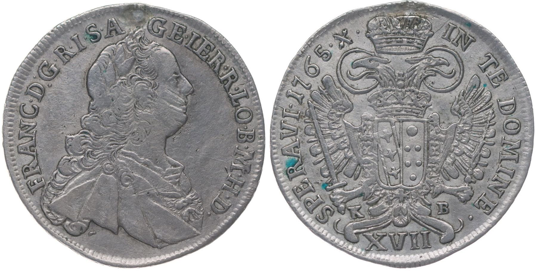 XVII Krejcar 1765 KB, N.27_ďub.v av., zalet.dírka