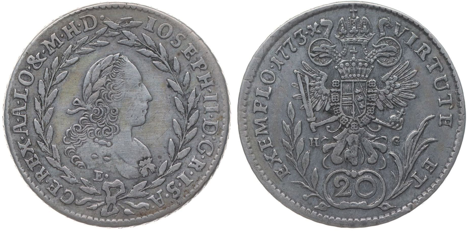 20 Krejcar 1773 E/H-G, Karlovský Bělehrad, Her.187_R!
