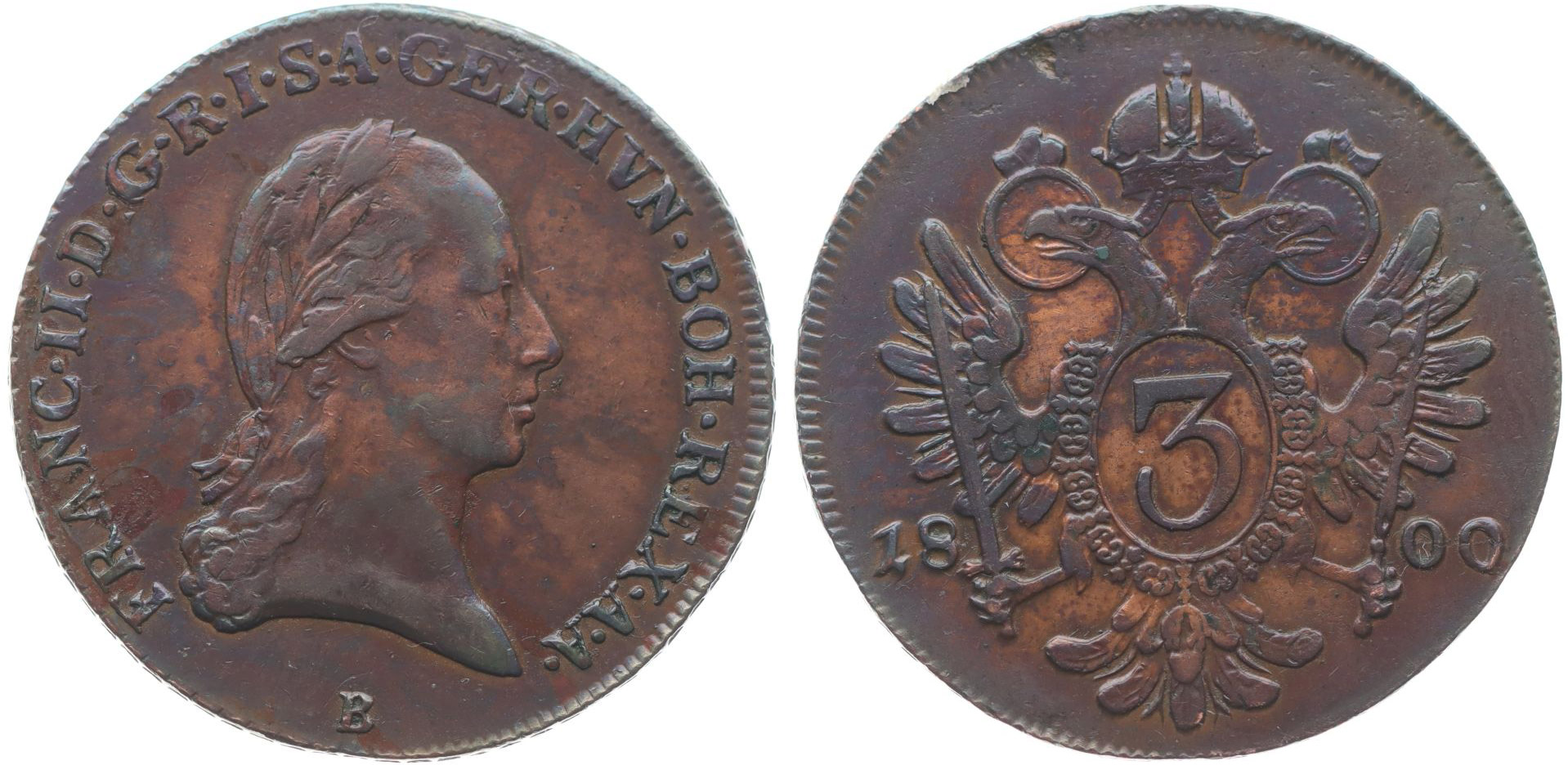 Cu 3 Krejcar 1800 B, minc.Kremnice