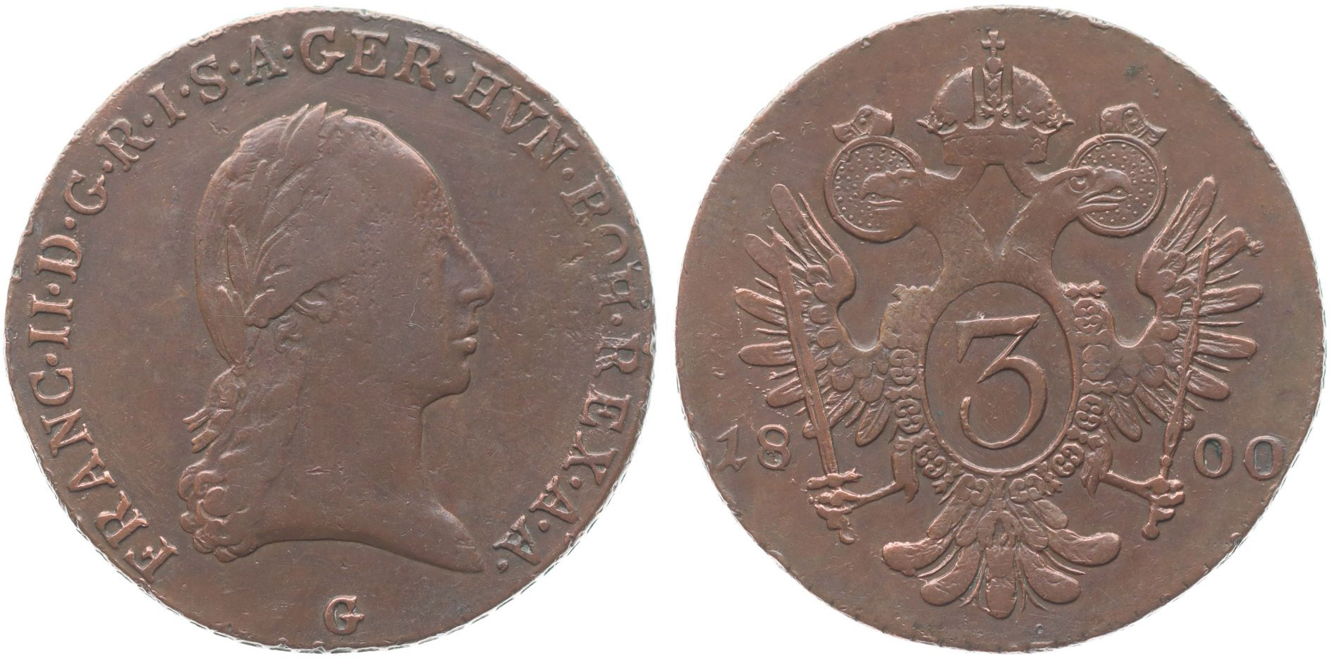 Cu 3 Krejcar 1800 G, minc.Nagybanya