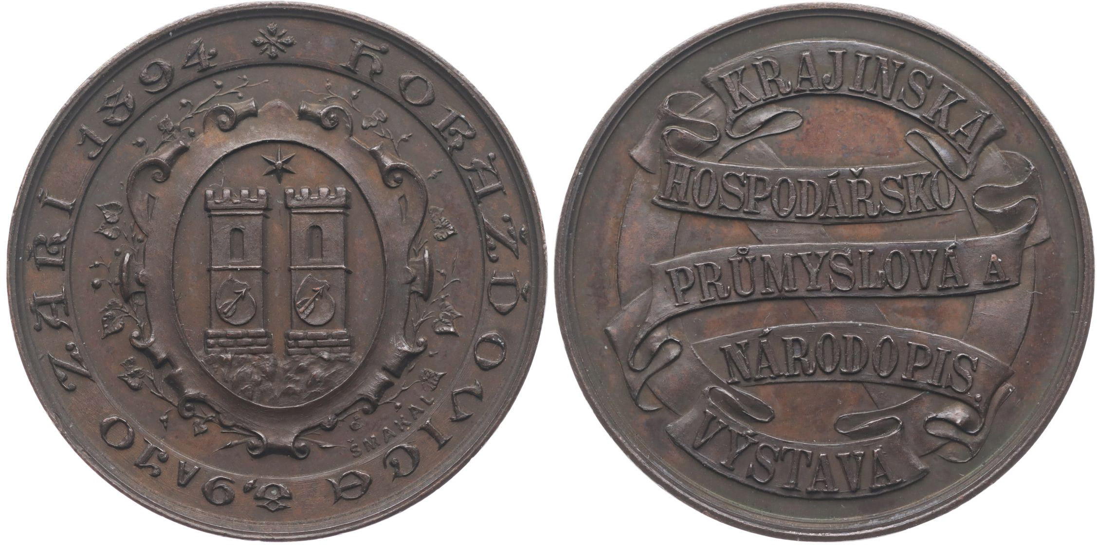 Nesign. - krajinská hospodářsko průmyslová a národop. výstava 9. a 10. září 1894, znak města v ozdobné kartuši, opis / 5řádk. nápis na stuhách, Bronz 35 mm, 15,44 g_R!