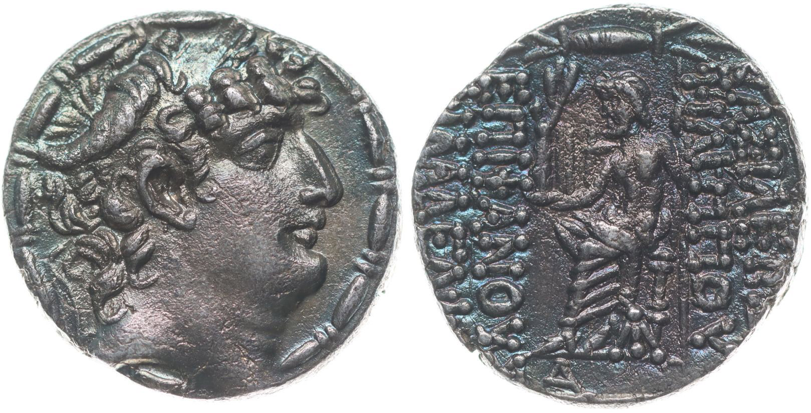 AR Tetradrachma, Portrét doprava / sedící Zeus s Niké na pravé ruce, nápisy, SG.7196