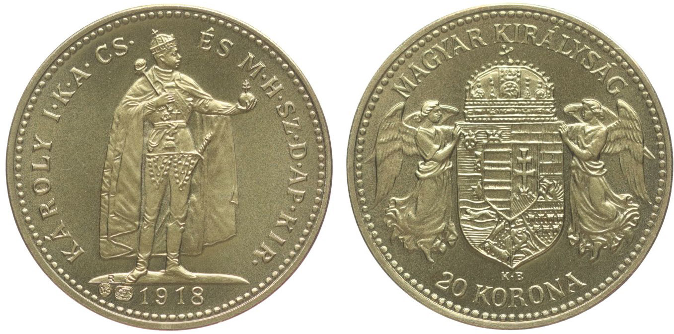 20 Koruna 1918 KB, znač.MK (mincovna Kremnica), vyd.v r.2015 21 mm, 6,90 g, náklad 150 ks _orig.certifikát + kapsle + repre dřevěná etue