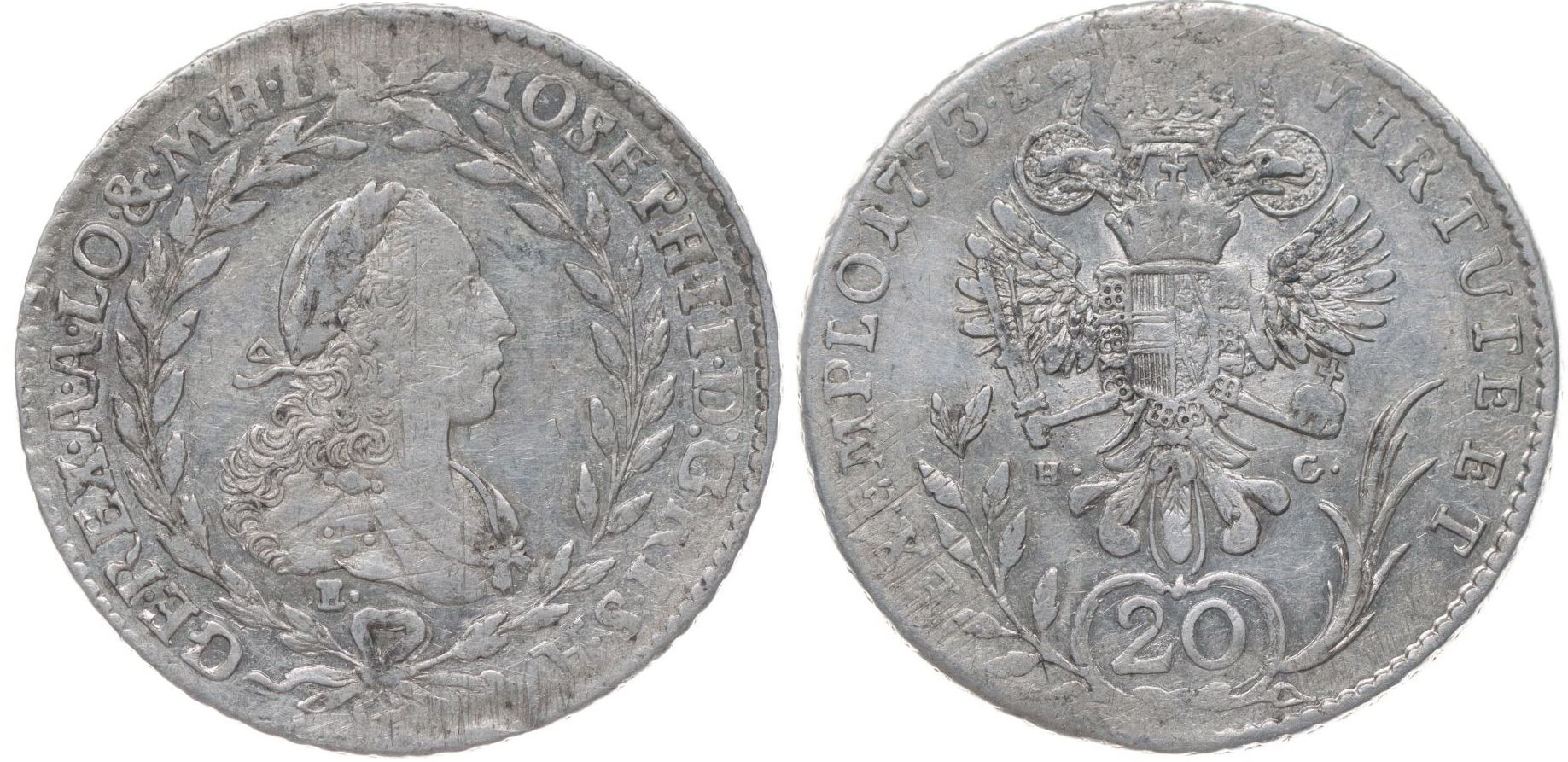 20 Krejcar 1773 E/HG, Karlovský Bělehrad, Her.187_dr.ned. R!