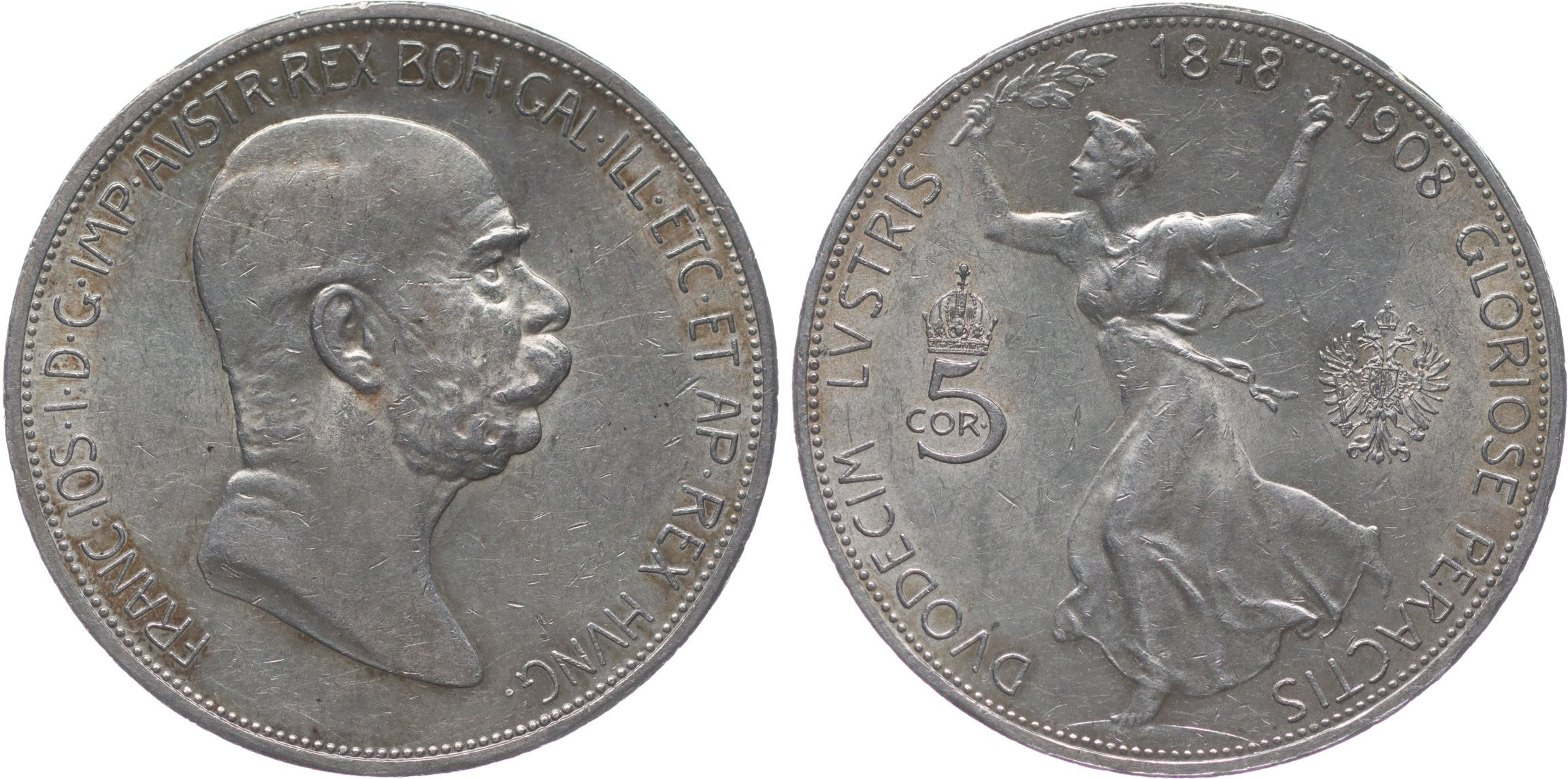 5 Koruna 1908 b.zn. - jubilejní