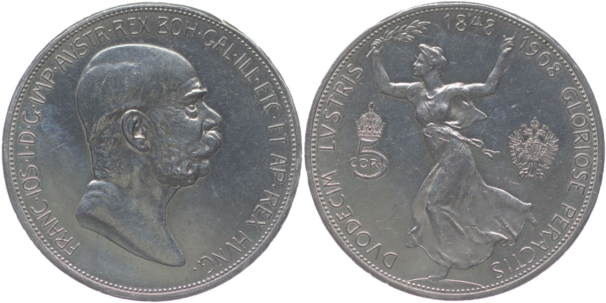 5 Koruna 1908 b.zn. - jubilejní