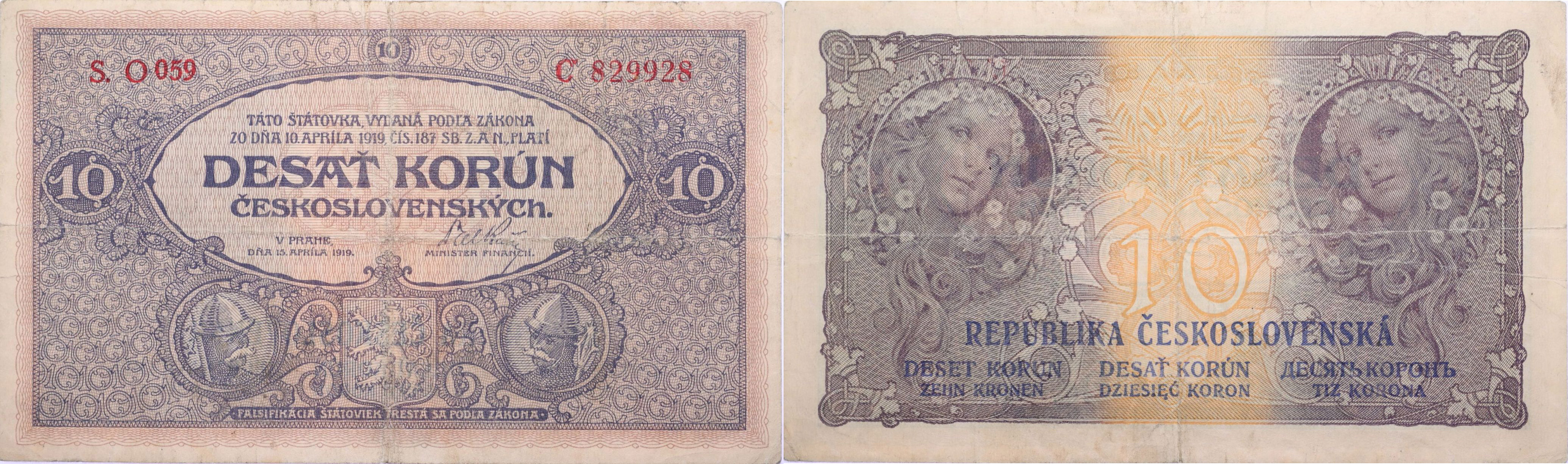 10 Kč 1919, Série O059, B.9b, Hejzl.9b_"neperf."