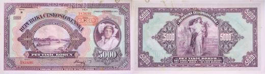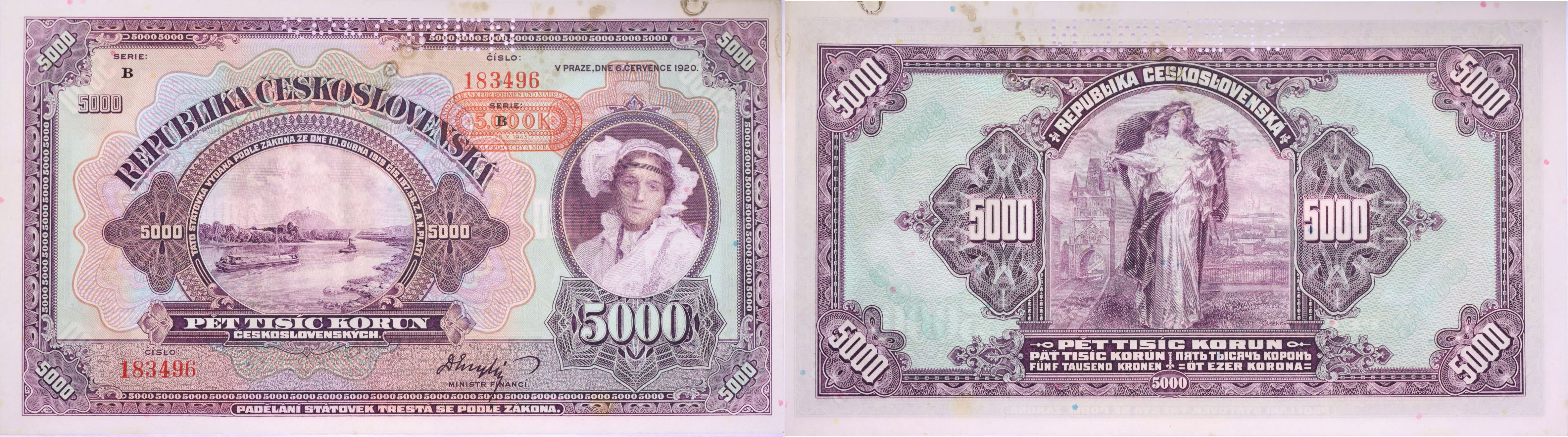 5000 Kč 1920 - přetisk sér.B, B.N3, Hejz.N1S1 _u horního okraje zahn.skvr. "SPECIMEN"