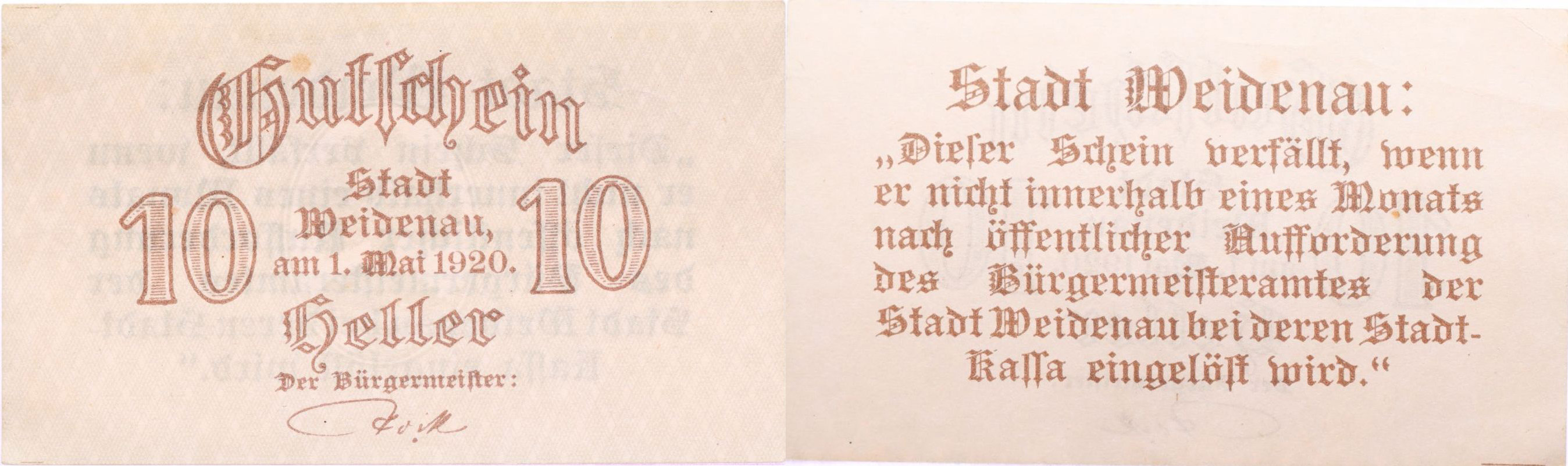 Vidnava (Weidenau) - 10 Heller 1.5.1920, DH.232.1.1