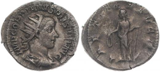 AR Antoninianus, Rv:"LAETITIA.AVG.N.", stojící Laetitia zleva Kamp.72.19, S.2338, C.121, RIC.86