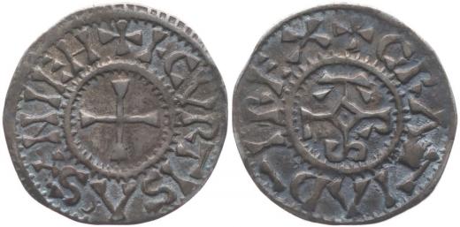 Denár, rev. I.CVRTISAS.NIEH (Courgeon ve Francii), Thom.1241 _starý podložní lístek RR!