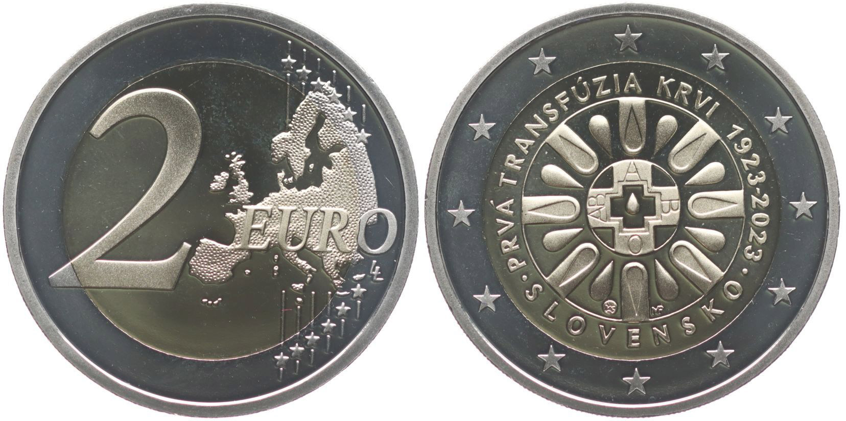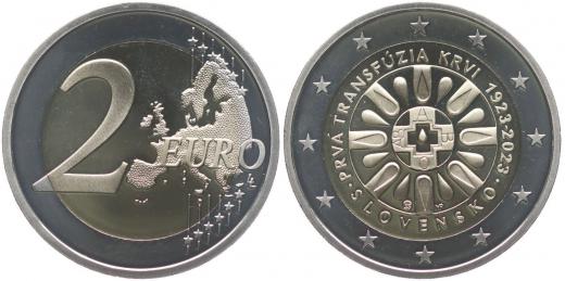 Slovenská republika - 2 Euro 2023 - 100.výr.první transfuze krve na Slovensku, náklad 5000 ks_orig.etue + kasple ě certifikát