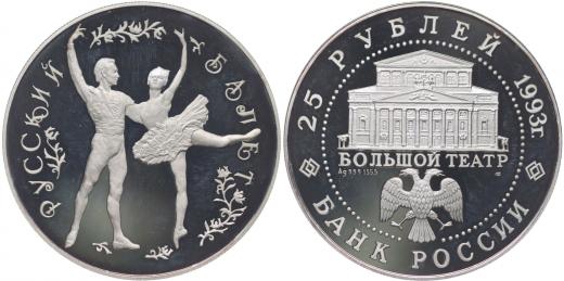 25 Rubl 1993 - ruský balet, Punc.999, Ag 60 mm, 5 unce 155,8 g Y.406_orig.etue + kapsle + certifikát