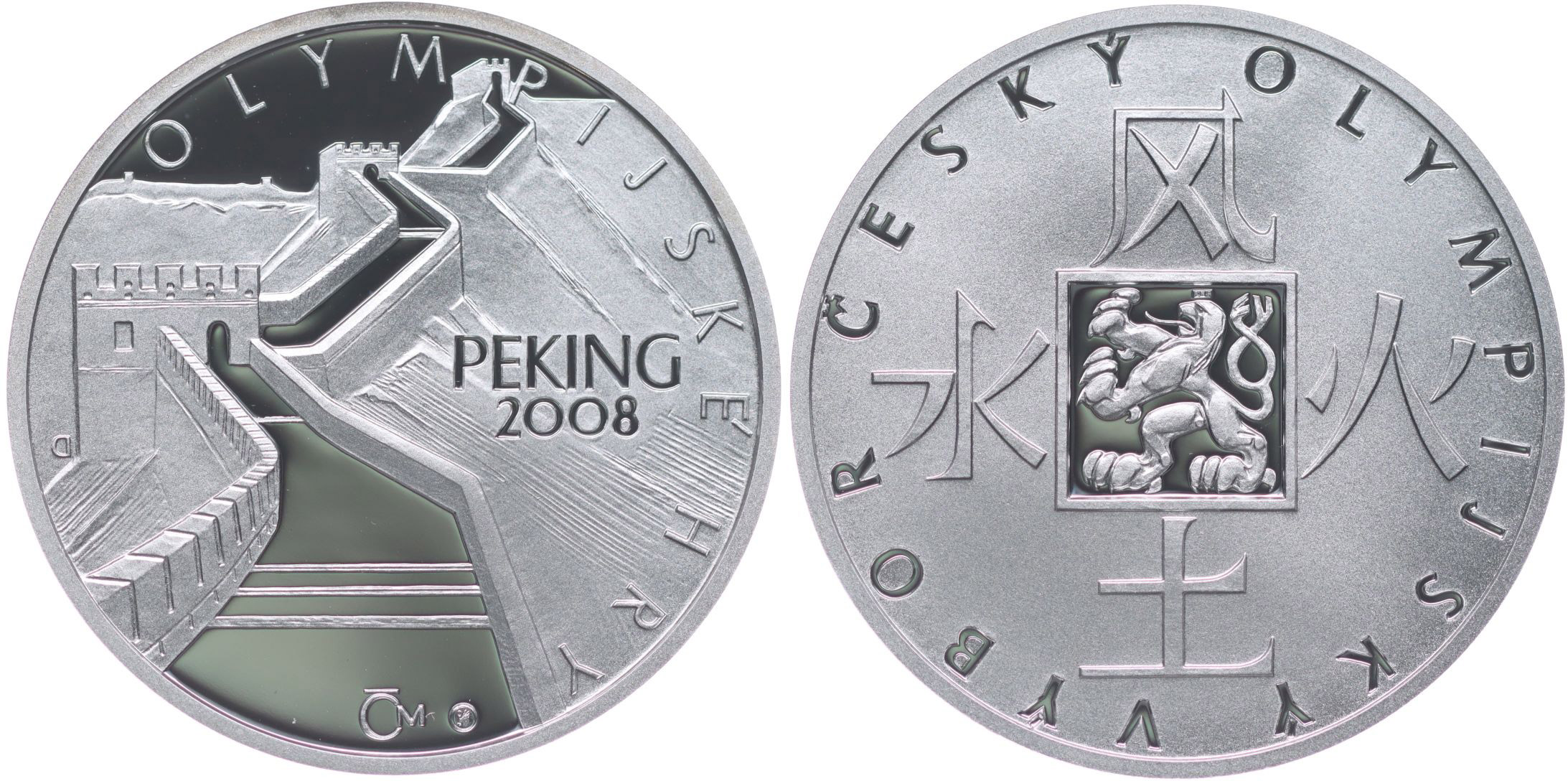 Olympijské hry Peking - Český olympijský výbor 2008 Punc.999 Ag 34 mm, 16 g, náklad 1000 ks_orig.etue + kapsle + certifik.