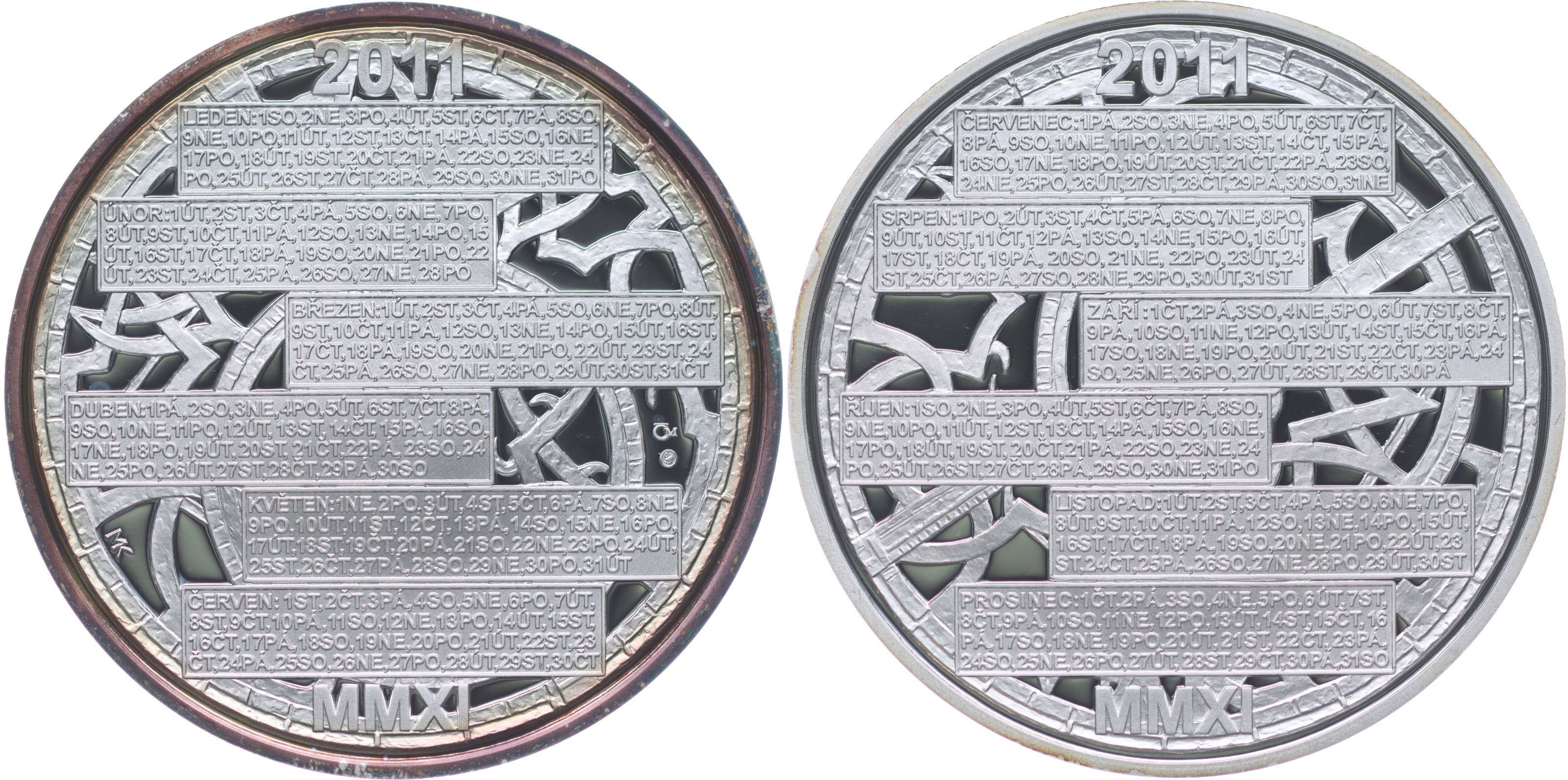 Kalendář roku 2011, emise 2010 Sign., Punc.999 Ag 50 mm, 42 g_orig.etue + kapsle + certifikát