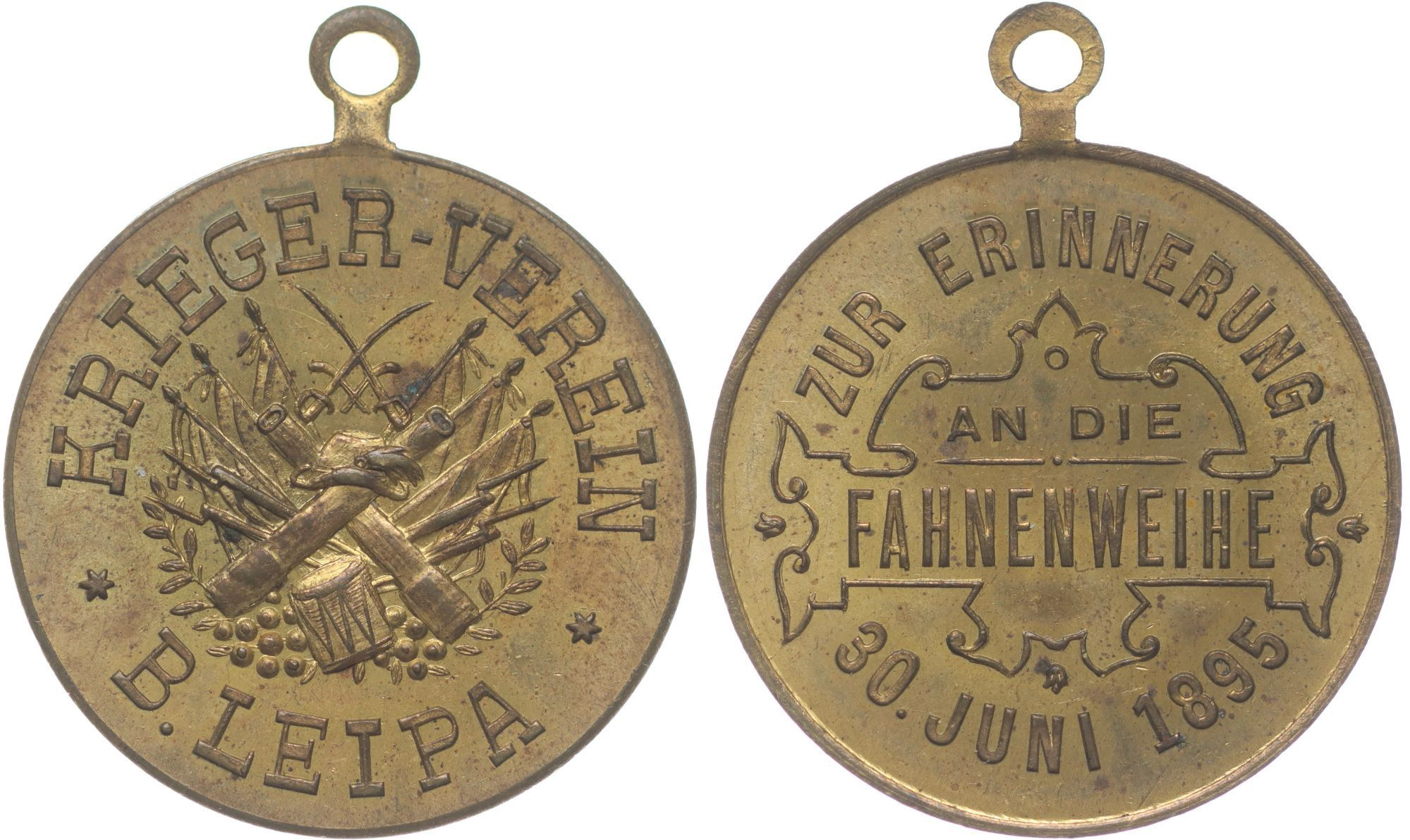 Česká Lípa (B.Leipa) - svěcení praporu, 30.6.1895 Vojenské atributy,opis / 2řádk.nápis, opis, Mosaz 31 mm _orig.raž.ouško