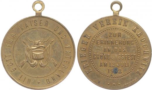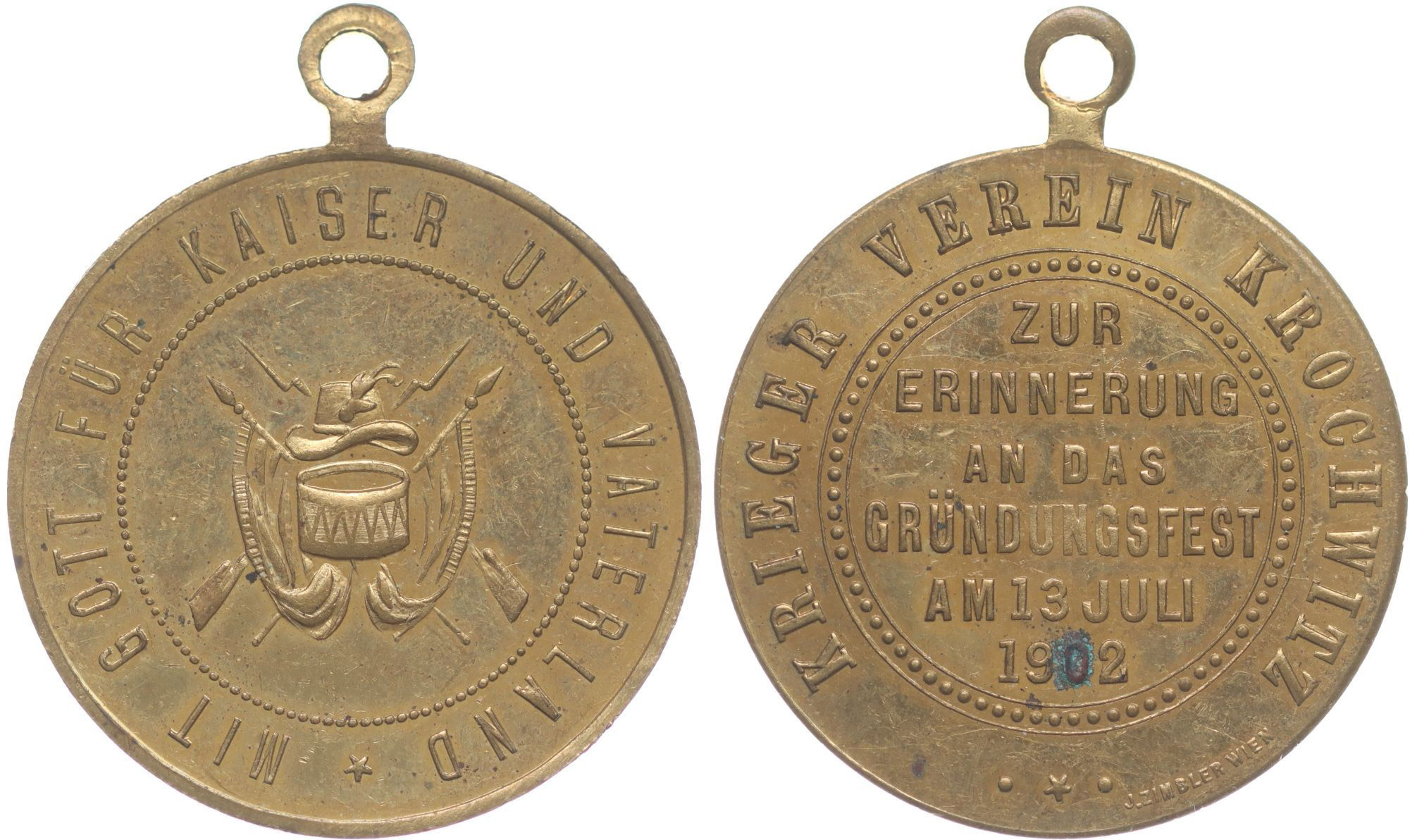 Chrochvice (Krochwitz) dne součást Děčína - v upomínku na slavnost 13.7.1912, vojenské atributy, opis / 6řádk.nápis, opis Sign.J.Zimbler Wien, Pozlac.bronz 31 mm_orig.raž.ouško