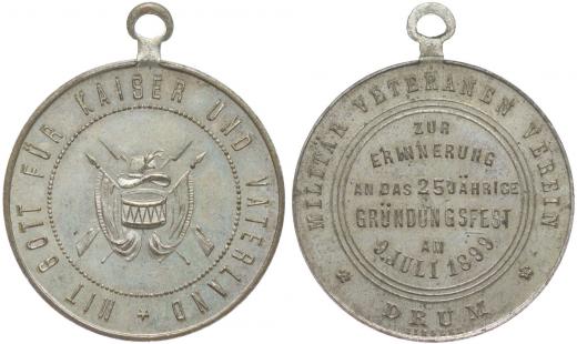 Stvolínky (Drum) - v upomínku na slavnost 25ti letého trvání spolku 9.7.1899, vojenské atributy, opis / 6řádk.nápis, opis Postř.bronz 31 mm_orig.raž.ouško