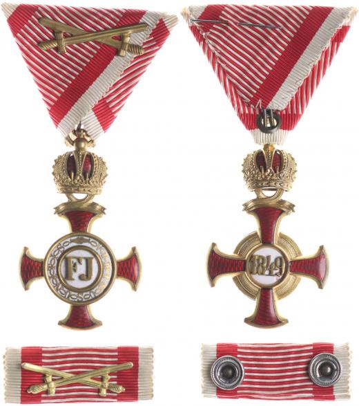 Zlatý záslužný kříž s korunou, VM.2/6-C-5, Pozlac.bronz VM.2/6-C-5, Marko.138h_válečná stuha + stužka s meči + orig. etue