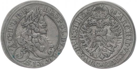 3 Krejcar 1698, Břeh-Brettschneider, Nech.937, ČS.911