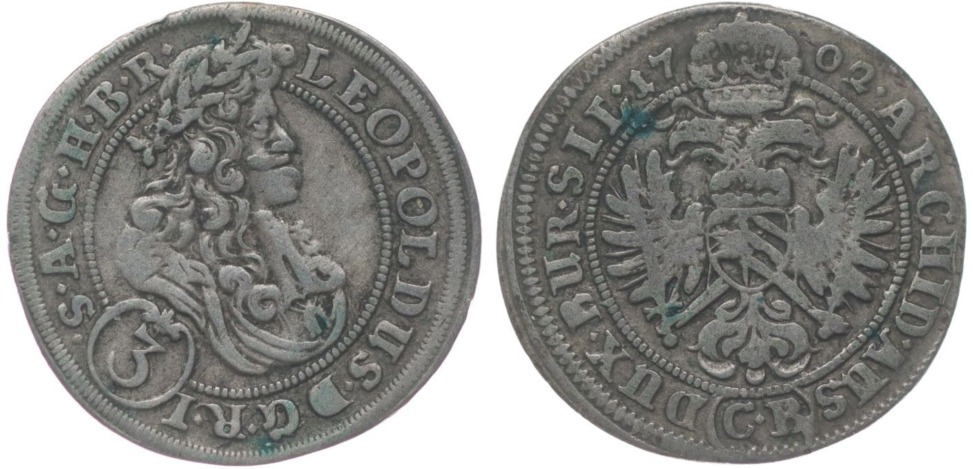 3 Krejcar 1702, Břeh-Brettschneider, Nech.945, Her.1570