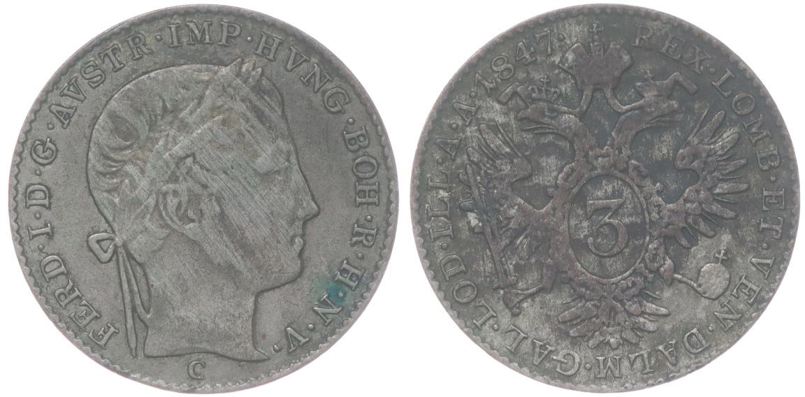 3 Krejcar 1847 C_just. v av.