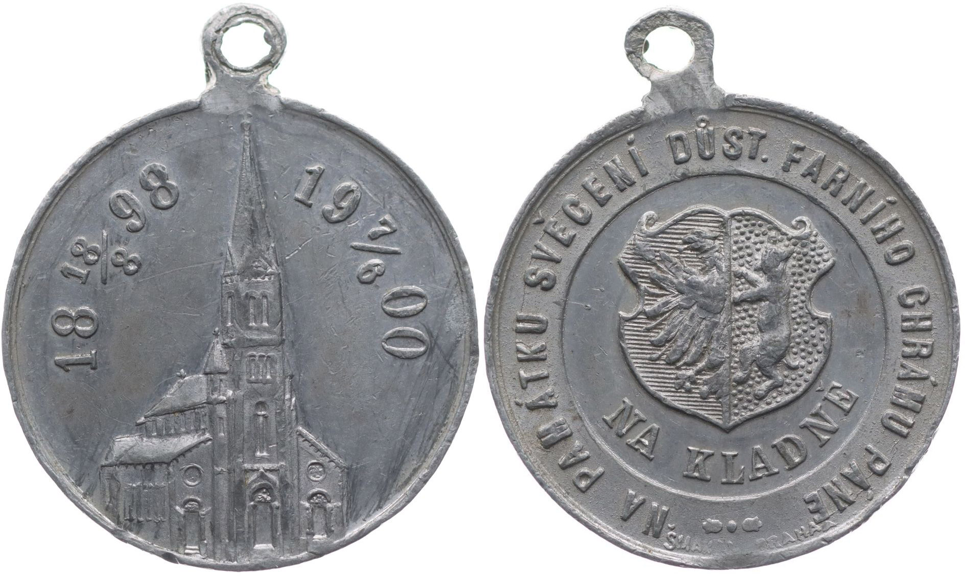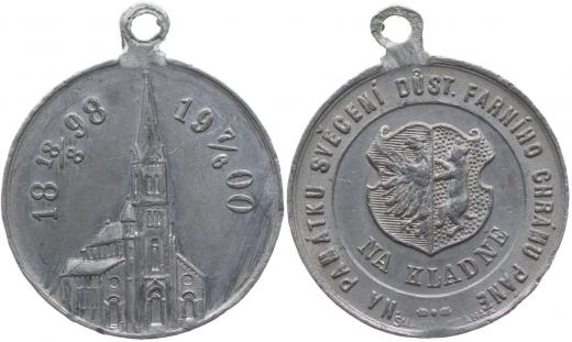 Na památku svěcení důst.farního chrámu Páně 18.8.1898 - 7.6.1900 Pohled na chrám, v opisu vročení / znak města, opis, Sign.Šmakal Praha Sn 29,5 mm, 9,01 g_orig.raž.ouško