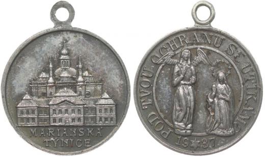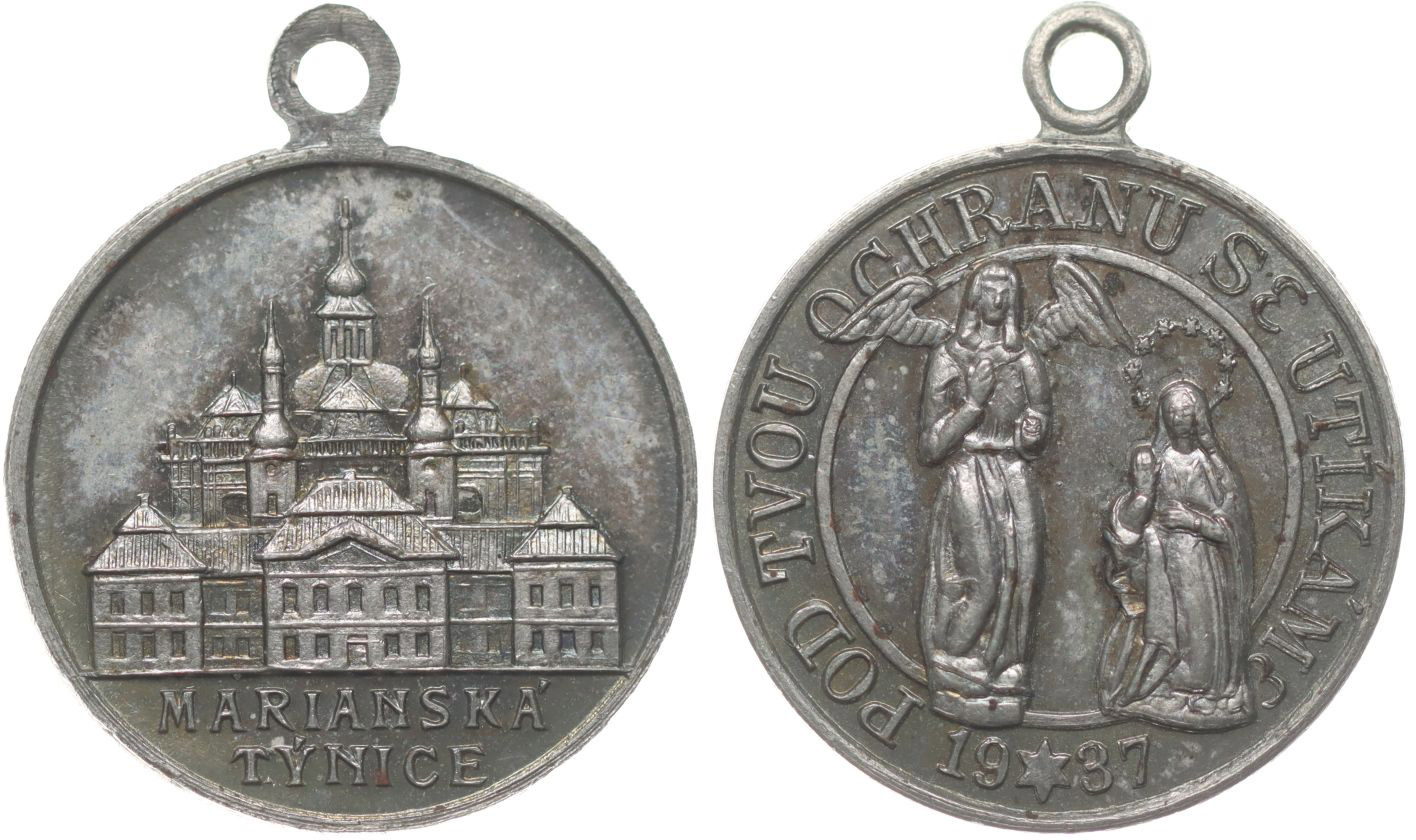 Pohled na poutní chrám, 2řádk.nápis v úseči / anděl strážný s Pannou Marií, opis, 1937, Nesign., Postř.bronz 22 mm _orig.raž.ouško