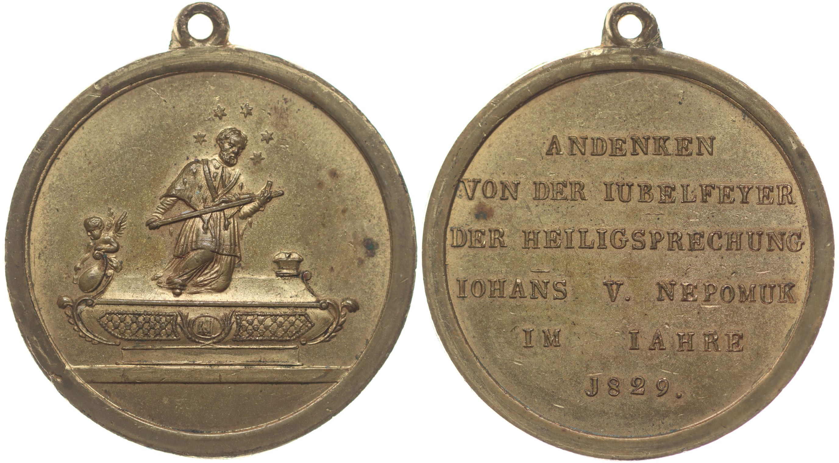 Sarkofág svatého Jana Nepomuckého / 6řádk.německý#Pozl nápis, 1829, Pozlac.bronz 43 mm, Př.579, Gr.69 (Bronz)