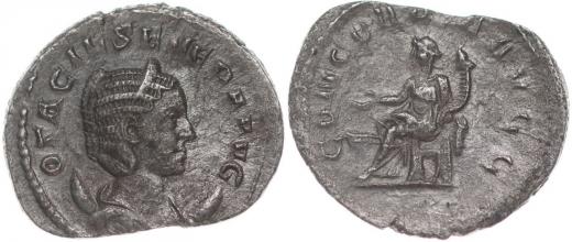 AR Antoninianus, Rv:"CONCORDIA.AVGG.", sedící Concordia s rohem hojnosti, K.75.1, S.2527, C.16, RIC.119_kraj.stř.