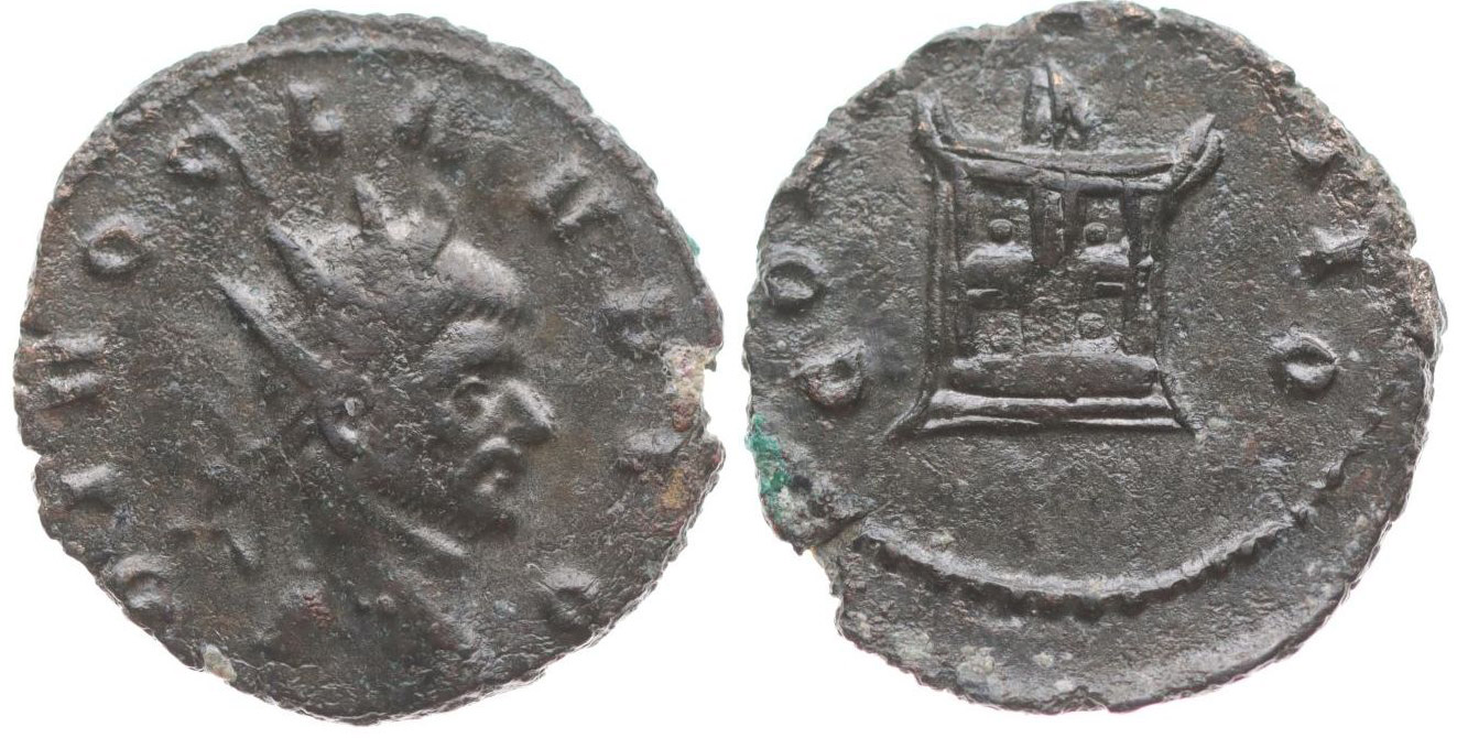 AE Antoninianus, Rv:"CONSECRATIO." oltář, S.3128, Kamp.104.74.2 RIC.261