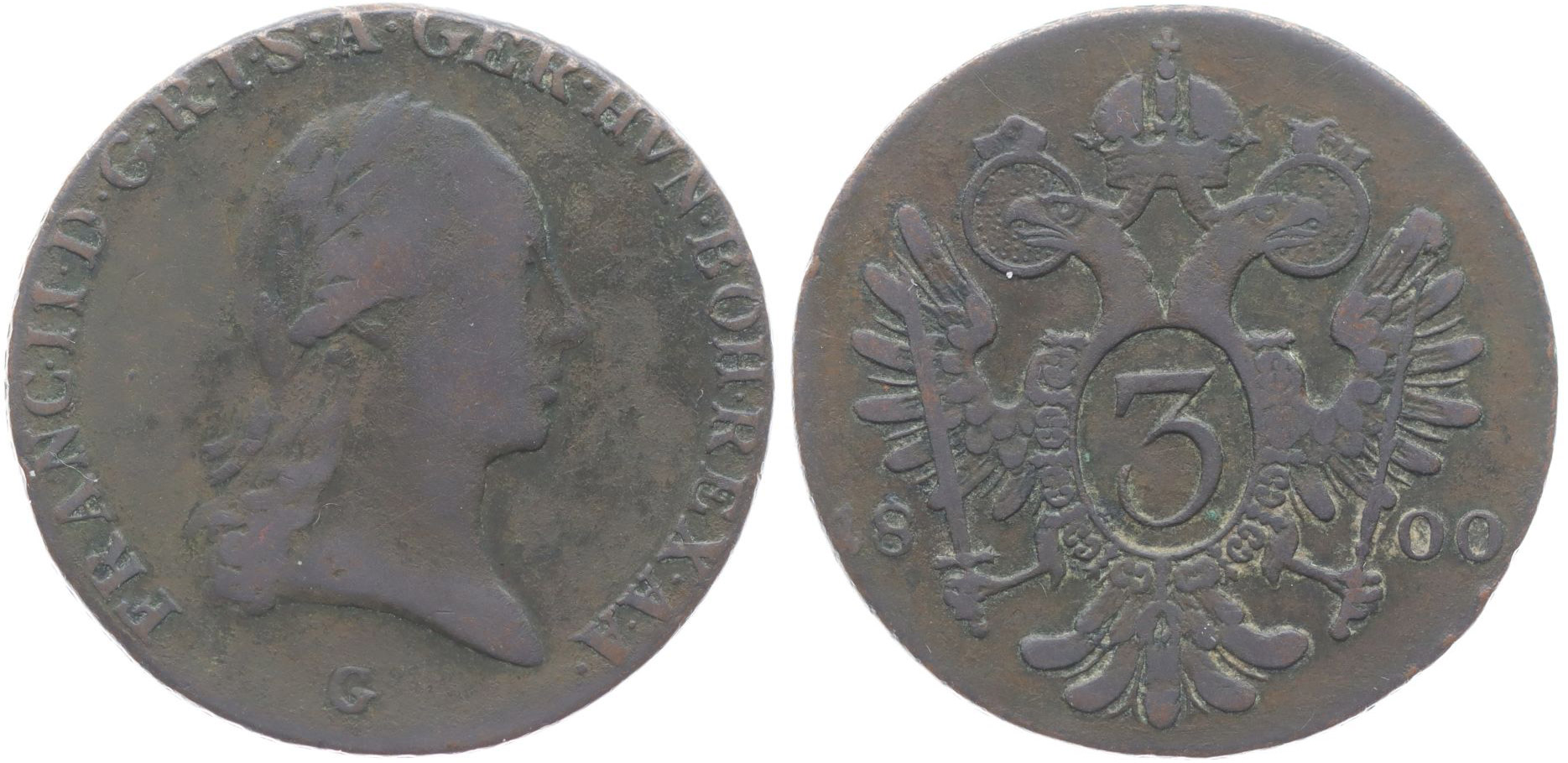 Cu 3 Krejcar 1800 G, minc.Nagybanya