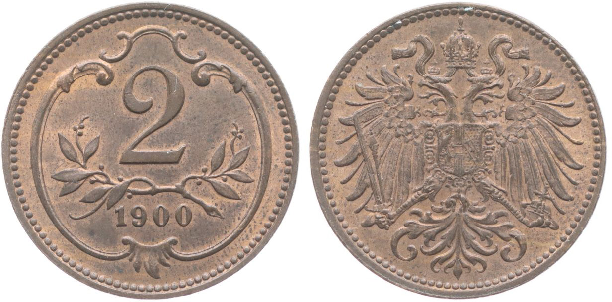2 Haléř 1900 b.zn.