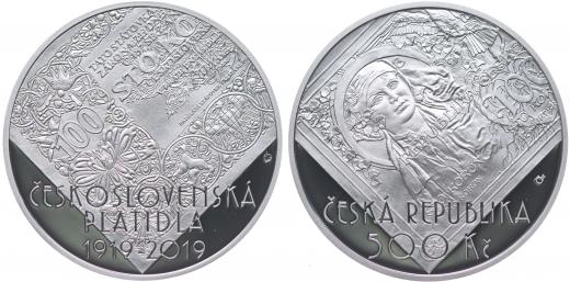 500 Kč 2019 - 100.výr.zahájení vydávání československých platidel _orig.etue + kapsle + certifikát