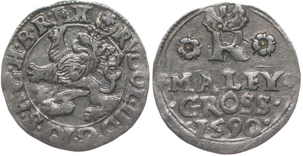Malý groš 1590, Jáchymov-Hoffmann, HN.8a (opis 7c), J.4d2_dr.ned.