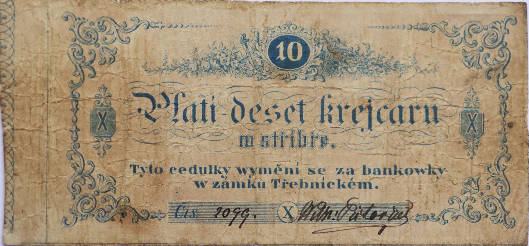Třebenice (Trebnitz) - 10 Kr.stř. b.l., Zámek Třebnický čís.1099, podpis Pistorius, VR.1370.12.02.b