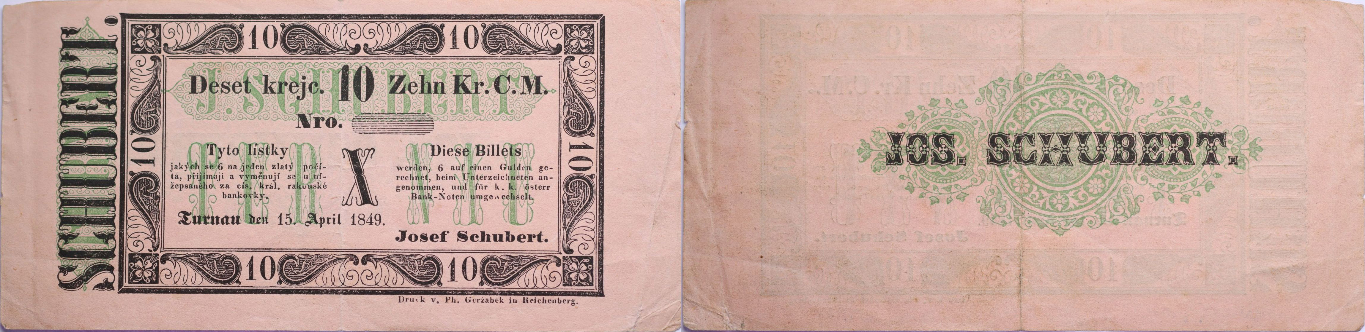 Turnov (Turnau) - 10 Kr.15.4.1849, Josef Schubert V-R.1405.06.06.a_natrž. 5 mm